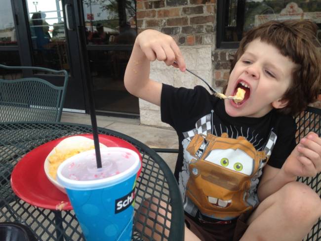 I let him drive the truck around a little bit between steps so I could keep his attention.