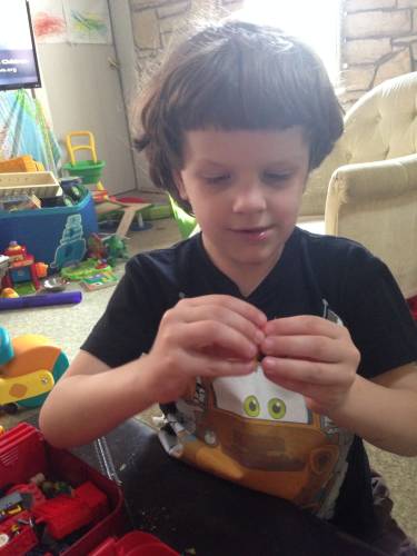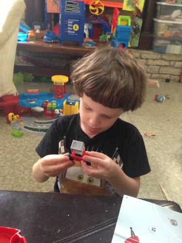There were only a couple steps where he needed some help, and I was happy to give it to him. His fine motor skills are still somewhat behind, so this didn't surprise me in the least.