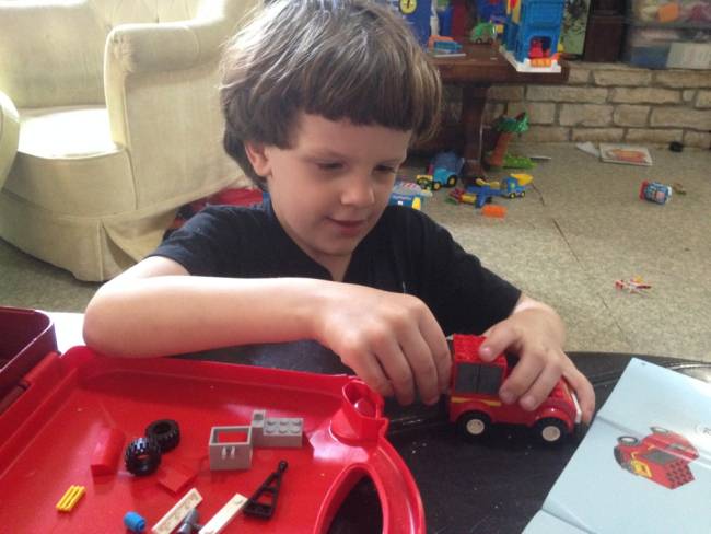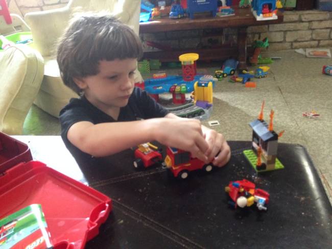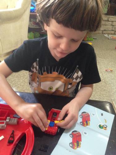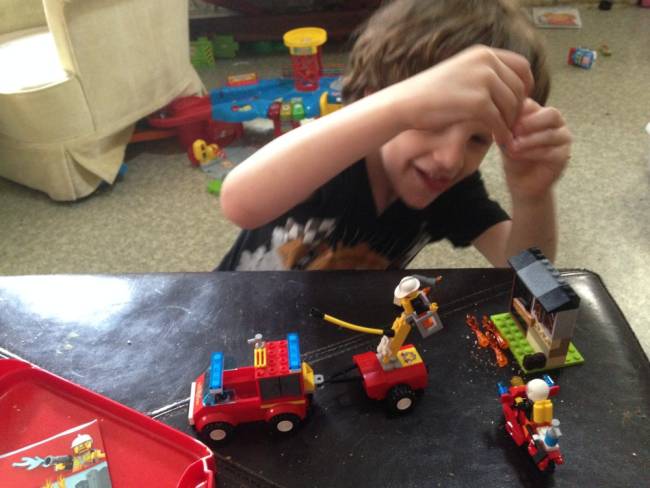 He loved playing with the set. He would "Start" a fire and then race the fire truck and motorcycle over and put it out. I think he did this about 4 or 5 times in a row.