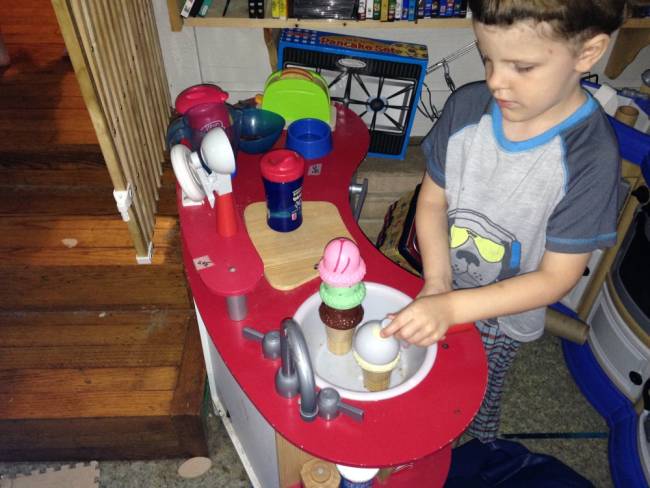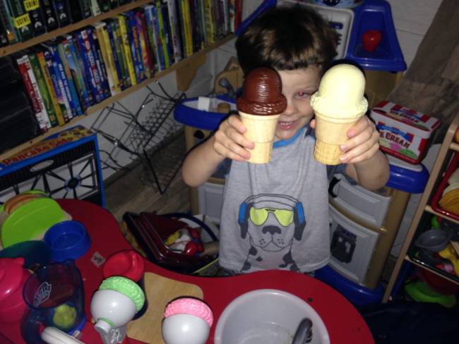 Since the Plastic Ice Cream sets were such a big hit with Froot Loop, we put a better quality set on his wishlist for Christmas last year and he got it!