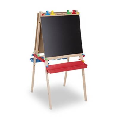 Another item all kiddos need is an easel. This one by Melissa and Doug is a good one. With the Melissa & Doug Deluxe Art Easel, children can create art with paint, chalk, pens, crayons, markers, and more, all at one convenient station. And when art time is over, parents and caregivers will appreciate the two-sided easel’s easy-to-clean design. Designed for kids ages three and up, this easel will provide hours of creative activity that is both educational and enjoyable. The easel features a bi-fold wood frame with two art stations, one on each side, which allows two children to work at one time. It’s also designed to let children experiment with several different art media: on one side is a chalkboard, on the other is a dry erase board, and in between the two easel sides is a dowel for holding a butcher paper roll. (Paper must be purchased separately.) The easel includes sturdy clips that can hold oversized individual art papers onto the easel's surfaces. It's rated 4.2 stars after over 1600 reviews.