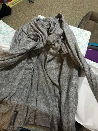 I LOVED this cardigan. I really did. I liked the color and the size and the fit. It was very soft and comfortable. I almost kept it and I sort of wish I had, but I thought $48 was too much to spend on a cardigan. I should have kept it. Humph.