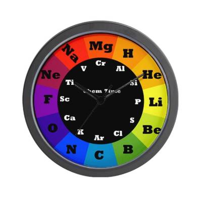 This one is another nerdy clock. It features science- chemistry specifically- by using the elements of the periodic table that represent the number. Plus, it is colorful. Very unique!