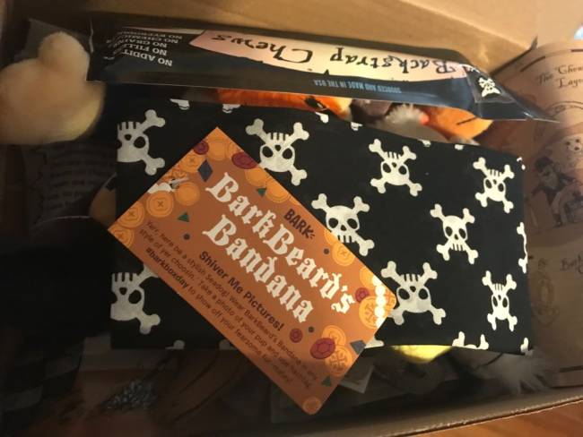 Th' first item in th' box was BarkBeard's Bandana. Avast! How Excitin'!