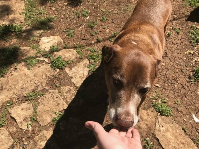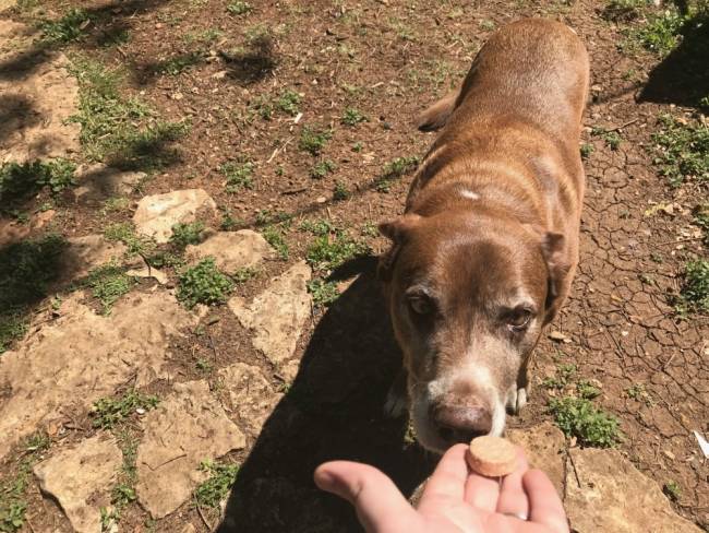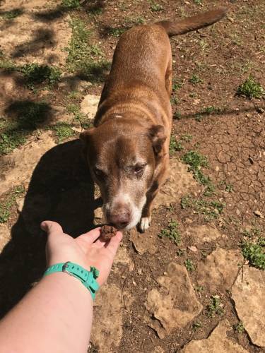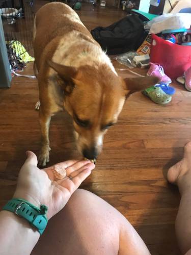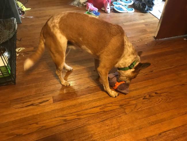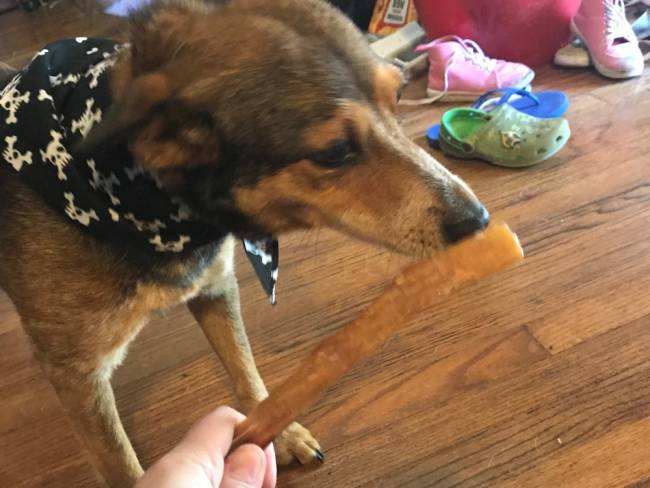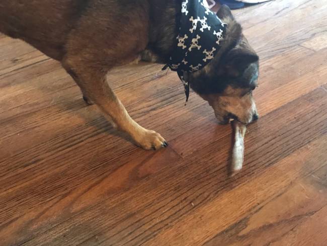 She spent quite a while chewin' on it 'n was extremely content about it.