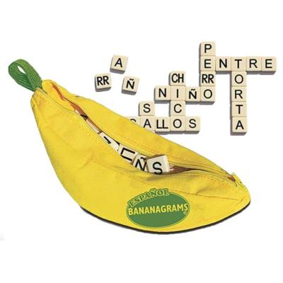 Spanish Bananagrams: Same as regular bananagrams, but with added spanish letters: Here’s the breakdown: 143 TOTAL; it has the following: A:17, E:17, I:8, O:12, U:7, CH:2, RR:2, LL:2, Ñ:2, B:3, C:5, D:7, F:2, G:3, H:2, J:2, K:1, L:5, M:3, N:7, P:3, Q:2, R:6, S:8, T:6, V:2. W:1, X:1, Y:2, Z:2