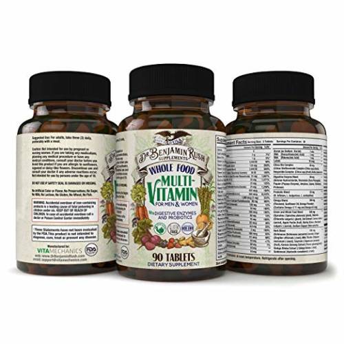 With my PCOS and severe allergies, as well as my anxiety and GERD, I have to take several prescriptions. I also have a vitamin D and an iodine deficiency which requires me to take supplements to keep them at acceptable levels. I also take additional supplements for all the aforementioned health issues, and I have to take some MORE on top of those to counter the effects of some of those medications. Dr. Benjamin Rush's Natural Whole Food Daily Multivitamin wants to be a multivitamin with lots of extras to cut down on all of the pills taken daily.